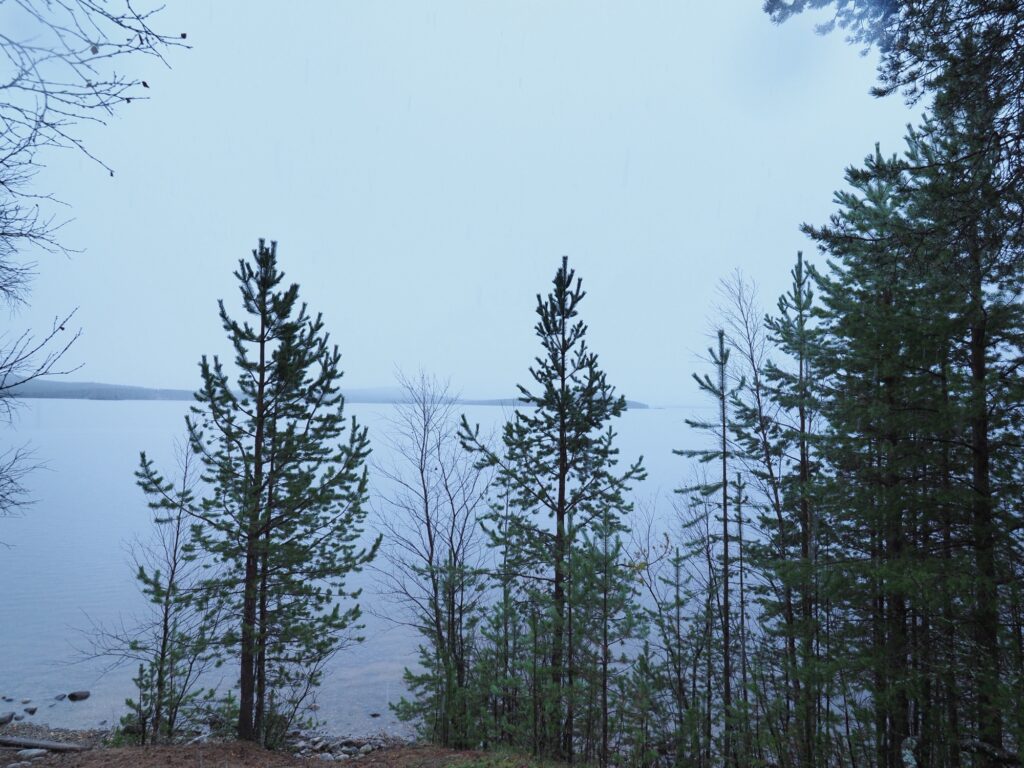 夜の10時くらいまで雨や雪。1時間ごとに窓からイナリ湖をチェックしました。