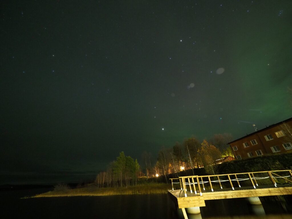 現地時間夜の10時から0時まで撮影しても雲が多くオーロラは、ほとんど撮れませんでした。星は全く見えなく、夜中2時ごろでも雲が厚かったです。